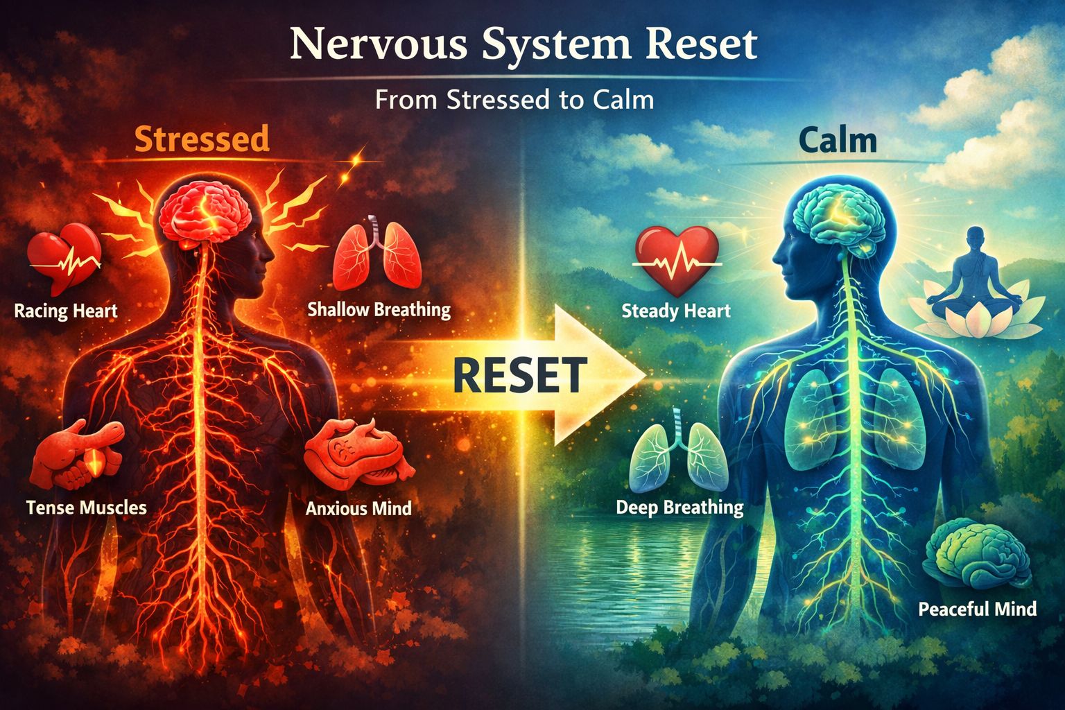 ESSENTIAL: Remember to exhale longer than you inhale; this is fastest way to prompt the nervous system to settle.